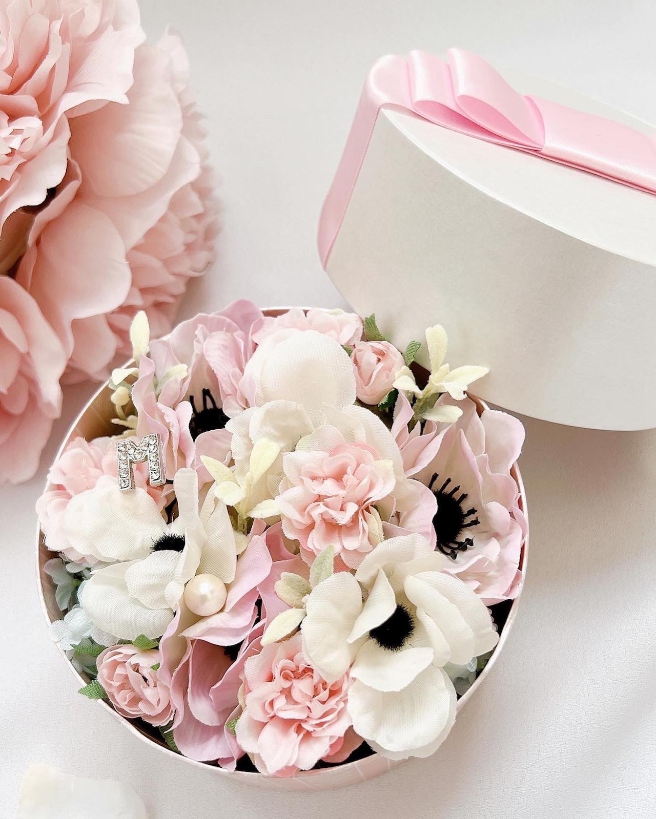 花材についての細かい指定はお受けしていませんが、好きなお色や好みを予め伺います。